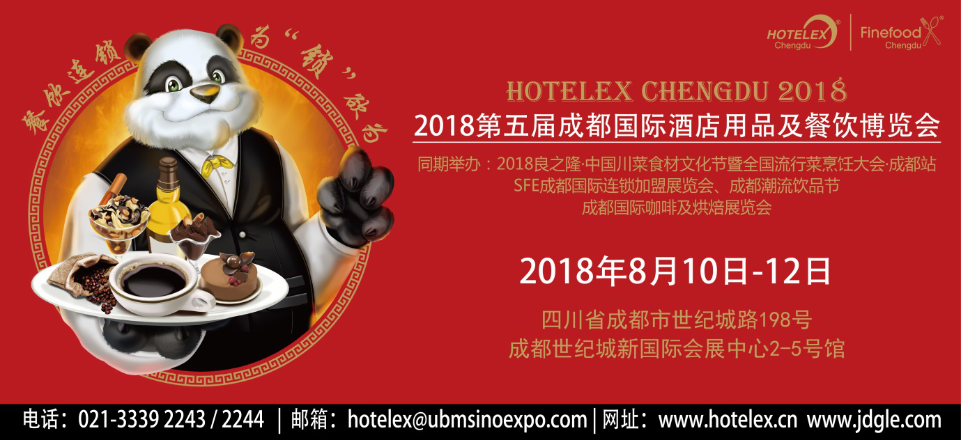 第五屆成都國際酒店用品及餐飲博覽會(簡稱:HOTELEX Chengdu 2018)將于2018810日至12日在成都世紀城新國際會展中心2-5號館舉行(四川省成都市世紀城路198號)。同期還將舉辦2018良之隆中國川菜食材文化節(jié)暨全國流行菜烹飪大賽-成都站、SFE成都國際連鎖加盟展覽會、成都流飲品節(jié)以及成都國際咖啡及烘焙展覽會。作為上海國際酒店及餐飲業(yè)博覽會的地方展,立足四川蓉城,輻射西南地區(qū),旨在為客戶提供最豐富優(yōu)質(zhì)的選擇。