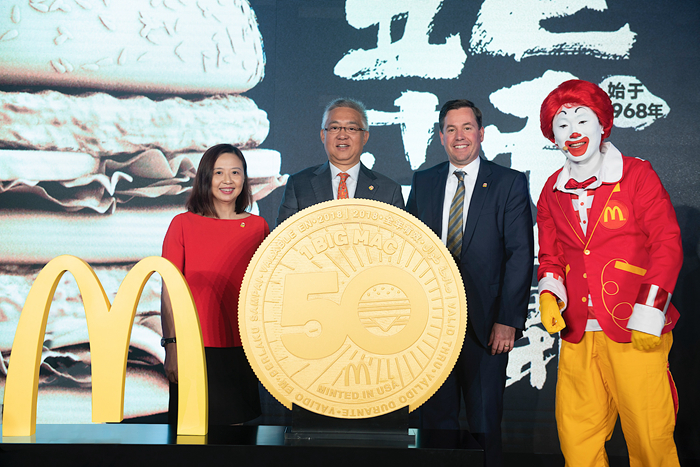 麥當(dāng)勞中國2018年8月3日宣布,將與全球同步慶祝經(jīng)典產(chǎn)品巨無霸50周年,送出一套五款巨無霸收藏幣MacCoin,供粉絲分享與收藏。2018年8月6日周一,中國內(nèi)地超過2500家指定麥當(dāng)勞餐廳將送出超過100萬枚MacCoin。顧客憑MacCoin可以在全球超過50個國家和地區(qū)的麥當(dāng)勞餐廳免費(fèi)兌換巨無霸一個。