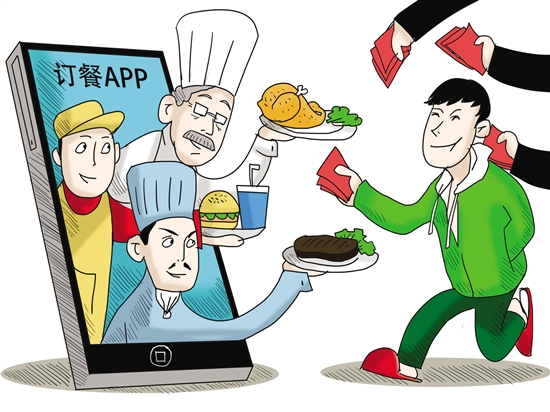 外賣在生活中迅速興起,而且外賣的形式也變得多樣化,不僅可以電話訂購(gòu),也可以在網(wǎng)上訂購(gòu)。在大學(xué)校園,外賣小哥的身影也成了一道熟悉的風(fēng)景線。