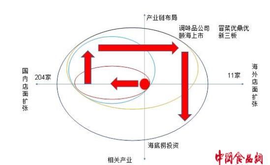 第二步,海底撈開始在產(chǎn)業(yè)鏈上布局,并且推動調(diào)味品、冒菜等新產(chǎn)品線發(fā)展壯大,縱向獲得了安全保障,抗風(fēng)險能力增加;