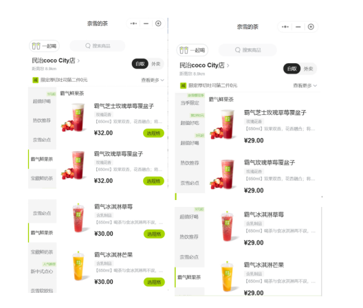 奈雪原“3”字頭產(chǎn)品降價(jià)前后對(duì)比