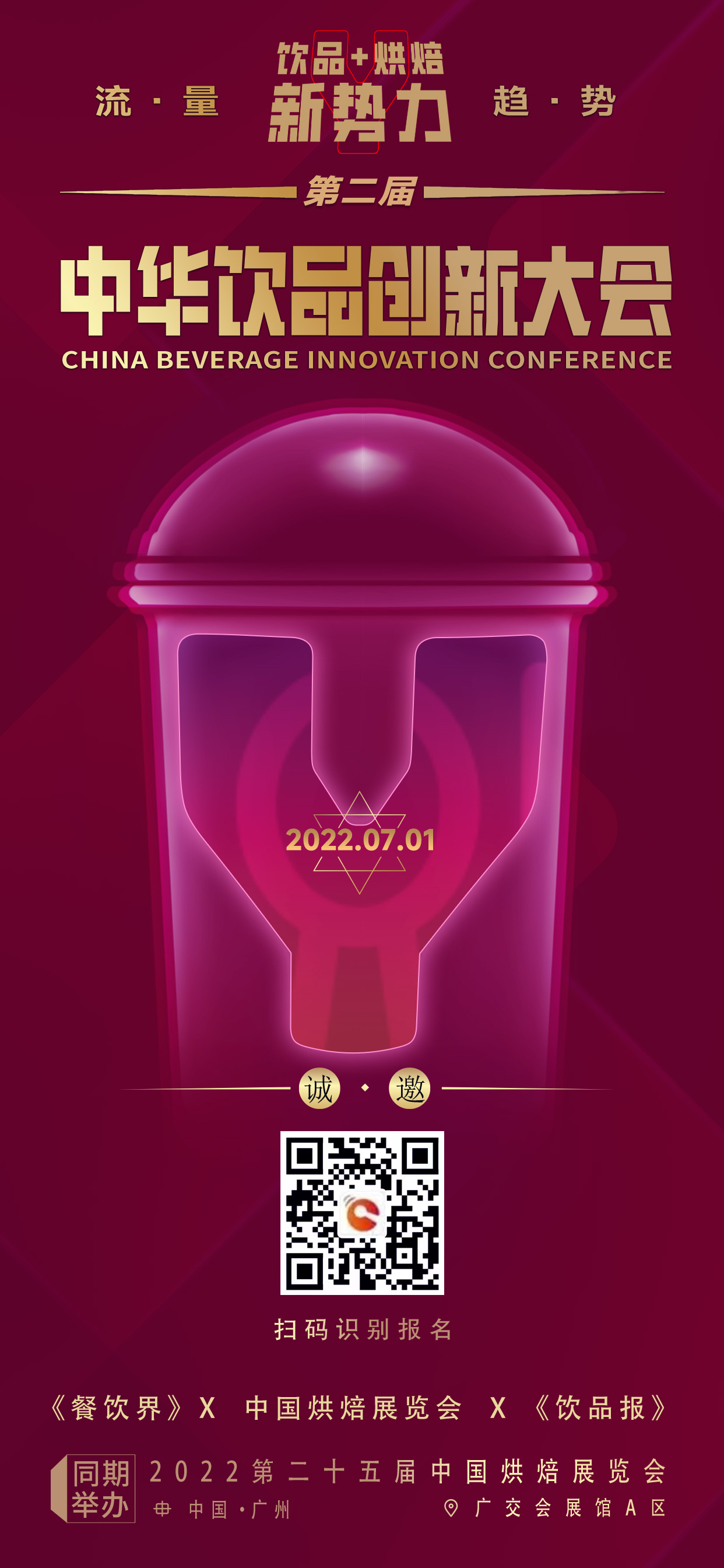 2022年7月1日,《餐飲界》新媒體將攜手中國烘焙展覽會、上海博華、《飲品報》新媒體共同打造“飲品+烘焙新勢力:2022第二屆中華飲品創(chuàng)新大會”,大會將定向邀請100+品牌,10+重磅嘉賓齊聚廣州,超200+行業(yè)人士將匯聚一堂,共啟2022行業(yè)“流量 勢能”密碼,一起探討后疫情時代飲品+烘焙的連鎖增長之道。