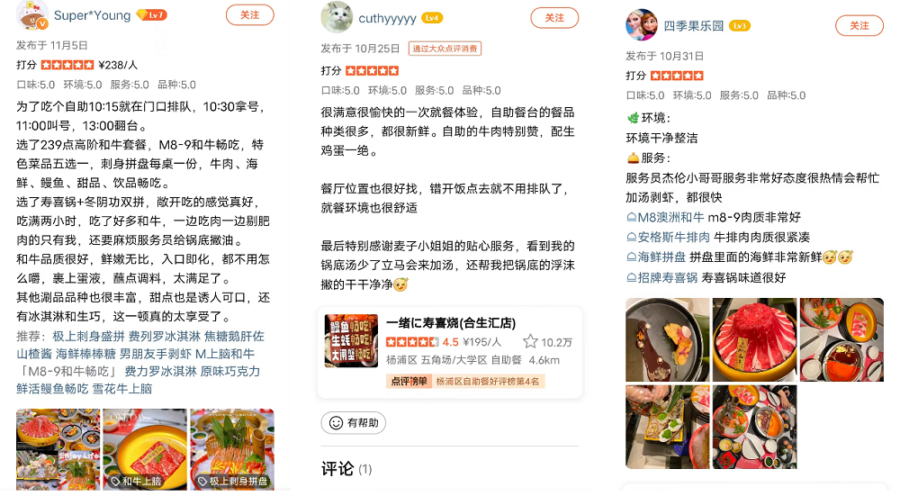 隨著人們生活質量日益提升,對肉的品質要求也越來越高,為了讓顧客吃到更優(yōu)質的肉,一緒為消費者帶來M級和牛,最高級別M8-9。顧客在大眾點評上紛紛留言:“一緒的牛肉很好吃、肉質新鮮、品種多”“能敞開吃的感覺真好,吃滿了兩小時”“和牛品質很好,鮮嫩無比,裹上可生食的朝一雞蛋,太滿足了”……