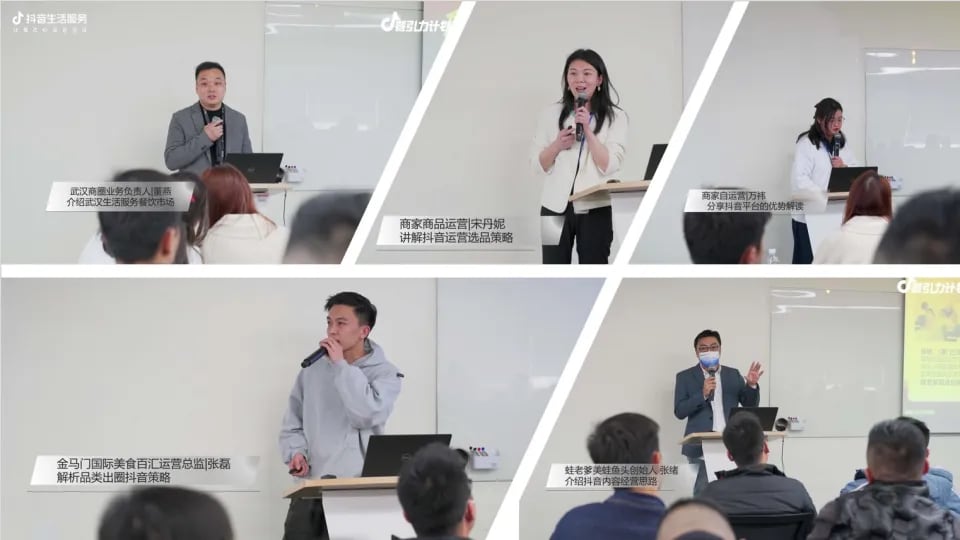在成都,93家餐飲行業(yè)客戶齊聚一堂,深入交流短視頻與直播在商家經(jīng)營中的應用與營銷促進成果。平臺基于團購配送業(yè)務運營策略的分享,吸引了68位新開商家在抖音生活服務生意場開啟新經(jīng)營。