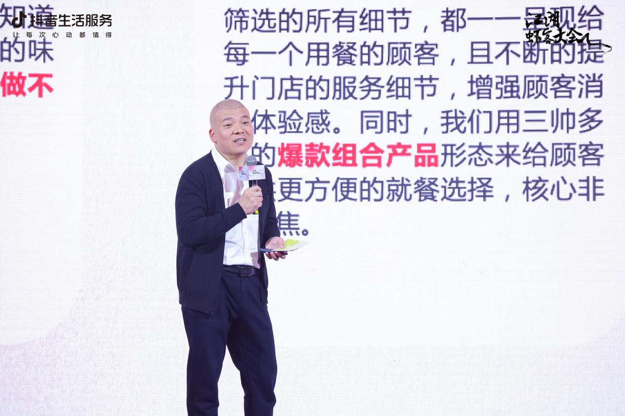 如何借助抖音平臺(tái)優(yōu)勢(shì),做好小龍蝦的長(zhǎng)效經(jīng)營(yíng)?大會(huì)現(xiàn)場(chǎng),抖音生活服務(wù)餐飲行業(yè)鄂皖陜大客戶業(yè)務(wù)負(fù)責(zé)人許旭以龍蝦品類經(jīng)營(yíng)破局為主題進(jìn)行分享。好的直播要有豐富的內(nèi)容直播場(chǎng)景,在一場(chǎng)場(chǎng)直播里迭代路徑,逐步找到適合達(dá)人的直播形式。他表示,在抖音,小龍蝦商家抖音生意經(jīng)營(yíng)應(yīng)有的鏈路是做好自營(yíng),用好達(dá)人,選好服務(wù)商,搭好IP。
