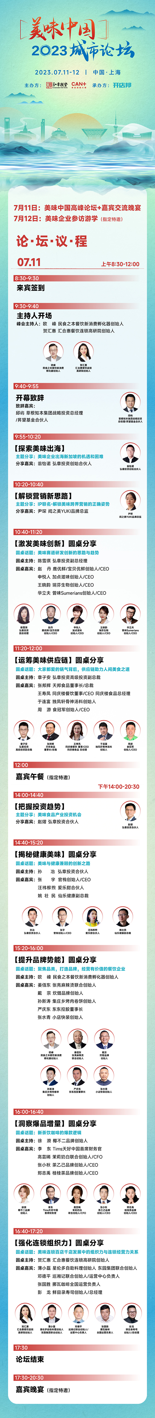 由弘章投資聯(lián)合參加CANPLUS主辦,餐飲界媒體支持的“2023美味中國上海高峰論壇”將于7月11-12日在上海隆重舉辦。