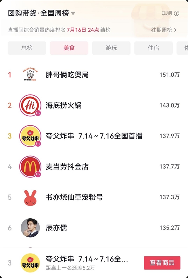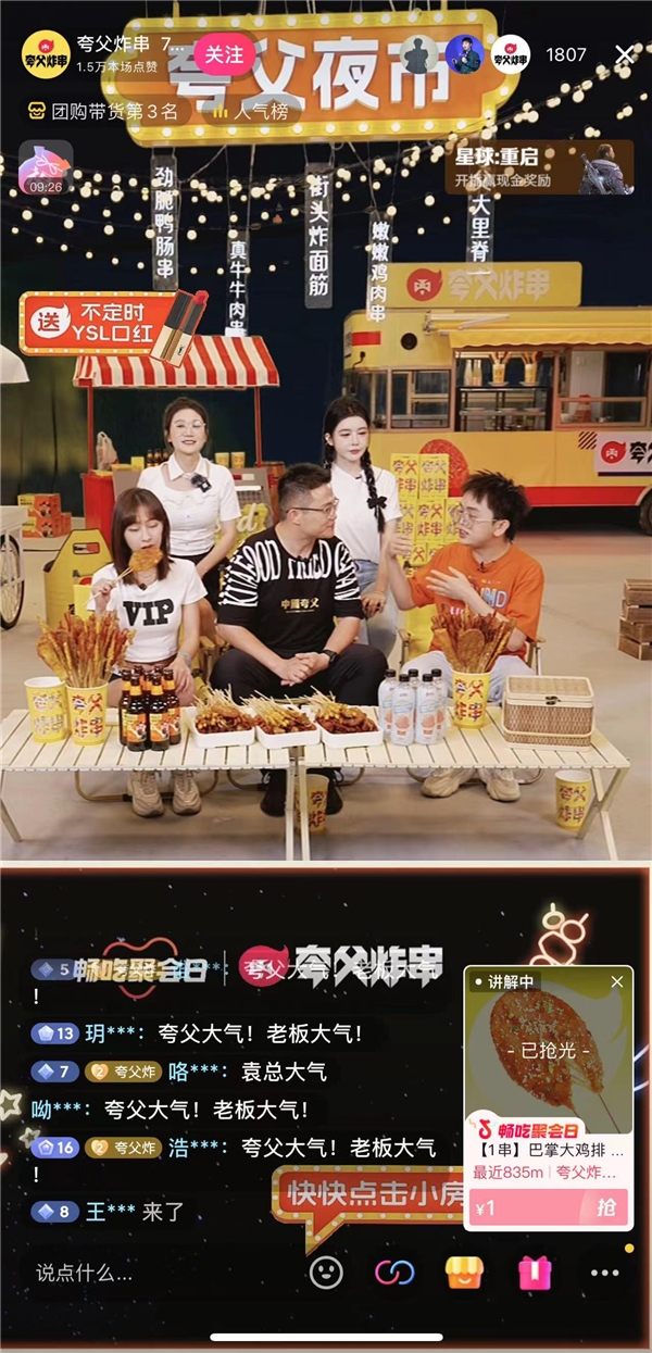 一組數(shù)據(jù)正驗(yàn)證消費(fèi)者、特別是年輕消費(fèi)群體對于夸父炸串的信任,前不久的抖音「暢吃聚會(huì)日」聯(lián)合夸父炸串,開展了一場以夜市為主題的沉浸式場景直播,創(chuàng)造了36小時(shí)累計(jì)成交額突破1766萬的成績,累計(jì)在線觀看人數(shù)超過100萬,成為抖音本地生活小吃快餐人氣榜TOP1品牌,也是全國美食周榜前三品牌。