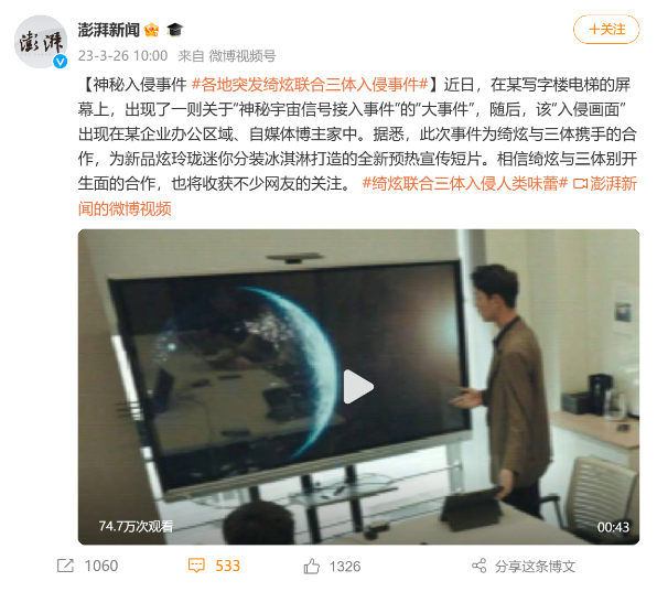 整體回顧近幾個(gè)月冰淇淋類產(chǎn)品在各類媒體上發(fā)布的信息,可以發(fā)現(xiàn),綺炫上市以來通過大屏、梯媒等戶外媒體結(jié)合主流長、短視頻平臺全面覆蓋了目標(biāo)消費(fèi)者的衣食住行。在此基礎(chǔ)上,綺炫跨界小米、聯(lián)動三體IP、聯(lián)合當(dāng)紅明星宋軼開啟“打卡愛麗絲最愛冰淇淋”等創(chuàng)意豐富的打卡活動,讓品牌影響力滲透不同圈層。在小紅書上,綺炫身影也經(jīng)常出現(xiàn),在淄博燒烤、520等時(shí)間節(jié)點(diǎn)和熱點(diǎn)事件期間通過KOC與消費(fèi)者積極互動,推動種草效果的社交裂變。系列活動總曝光量超過3.7億次,并沉淀了大量優(yōu)質(zhì)原創(chuàng)筆記,形成傳播長尾。