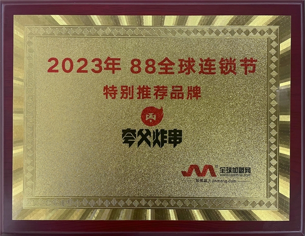 今年8月舉辦的“全球連鎖節(jié)高峰論壇”上,夸父炸串榮獲“特別推薦品牌”獎項(xiàng),體現(xiàn)了夸父炸串在加盟創(chuàng)業(yè)項(xiàng)目中的綜合優(yōu)勢,是創(chuàng)業(yè)加盟的首選品牌。
