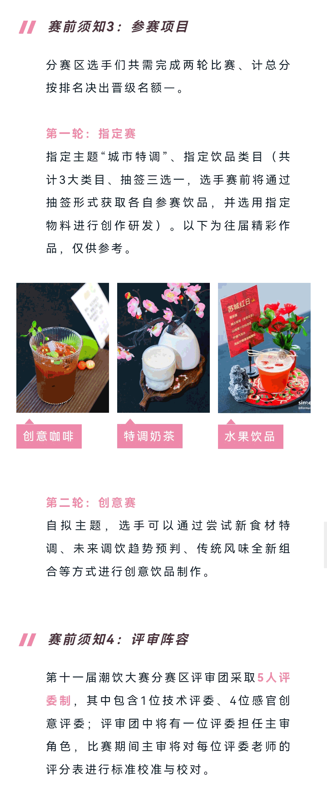 不管是咖啡師還是調(diào)飲師,不管是技術研發(fā)還是飲品愛好者,想要賽場奪桂、擁有自我高光時刻、走向更高的潮飲舞臺嗎?還不趕緊收下這份賽前須知,速速報名參賽吧。