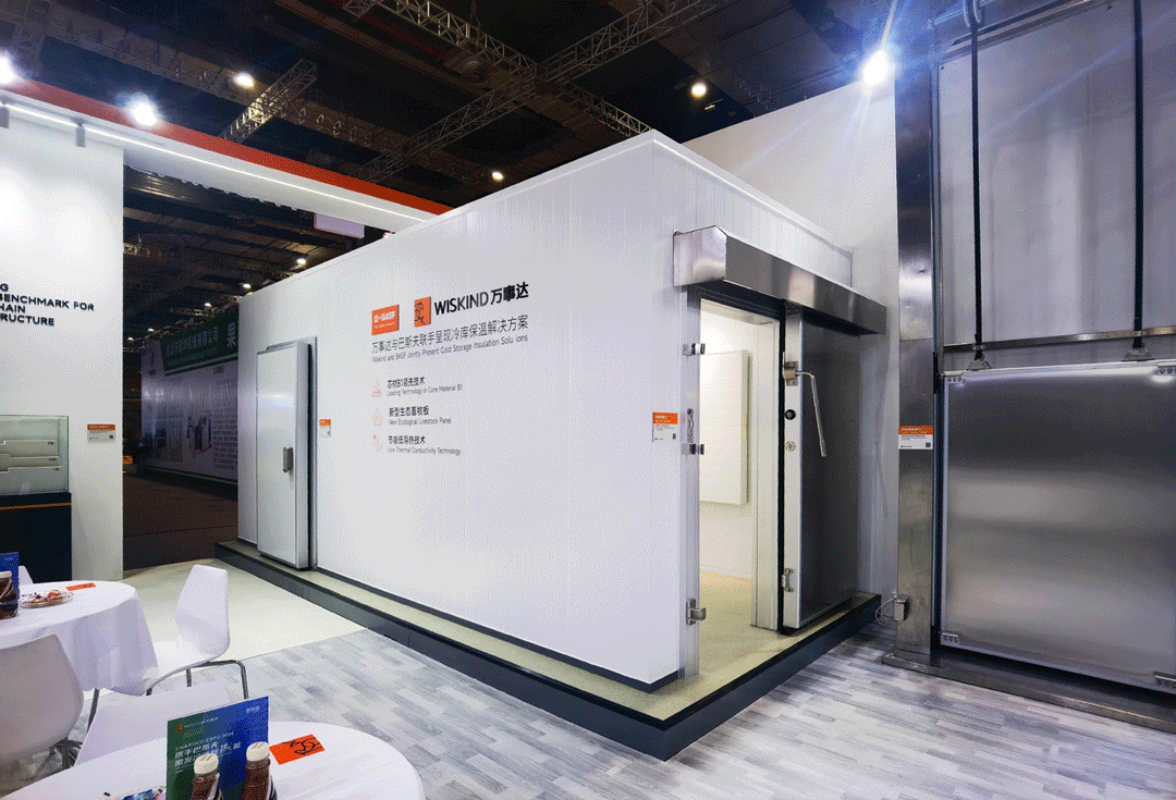 本次展會中,給大家?guī)砹艘豢钚乱淮郯滨ダ鋷彀濉惒示?聚氨酯冷庫板,該產(chǎn)品是萬事達(dá)與巴斯夫共同打造,專門為應(yīng)對食品加工、冷鏈物流等行業(yè)痛點而研發(fā)的最新產(chǎn)品。同時,其展出的冷庫樣板房、聚氨酯隱釘外墻板、冷庫保溫門等系列產(chǎn)品,吸引了大量游客駐足參觀。