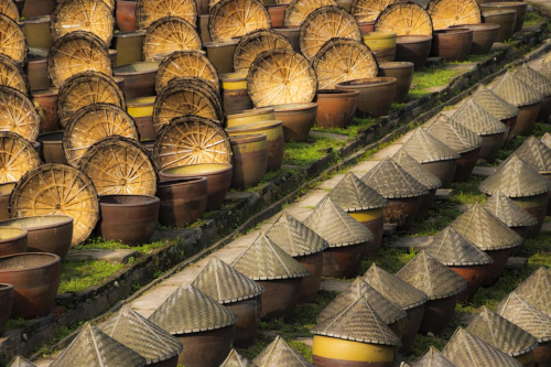 赤水河沿岸的三伏天,常年維持著恒溫與 75% 以上的濕度,這種獨特的氣候條件,恰是微生物發(fā)酵的黃金參數(shù)。45 度斜坡上的數(shù)千口陶缸,并非隨意擺放 —— 傾斜角度能讓每缸原料均勻接受日照,陶土的透氣特性則能調(diào)節(jié)缸內(nèi)濕度,形成天然的 "發(fā)酵實驗室"。當(dāng)?shù)貙嶒炇覚z測數(shù)據(jù)顯示,這里的菌群經(jīng)過百年馴化,已形成穩(wěn)定的微生物群落,在三伏天的旺盛代謝中,能將黃豆蛋白分解為 18 種氨基酸,其中鮮味氨基酸占比高達(dá) 42%,這正是鮮味的核心來源。