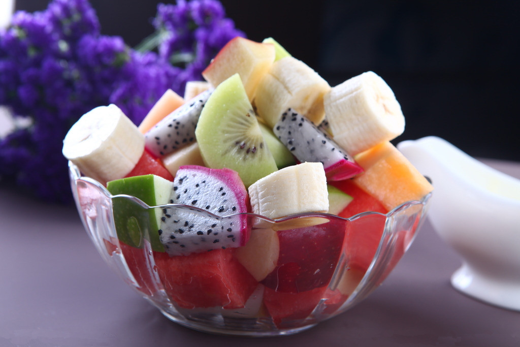 比如包裝一道普通的水果沙拉:首先改變了加工形式,將在廚房調(diào)味的過(guò)程改至客前堂烹,將改刀成塊的時(shí)令水果分別改刀后裝入小碟中,與拍碎的冰淇淋、沙拉醬、卡夫奇妙醬和盛果盤的玻璃盤一起用餐車推至客人桌旁,并倒入廣口玻璃瓶中,用手左右搖動(dòng)約1分鐘,待調(diào)料與水果充分拌勻后,倒入墊有生菜葉的玻璃盤中。
