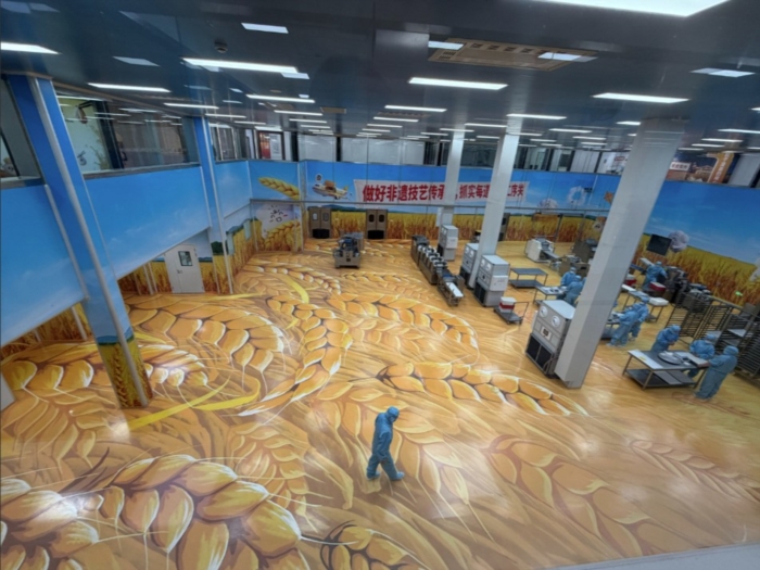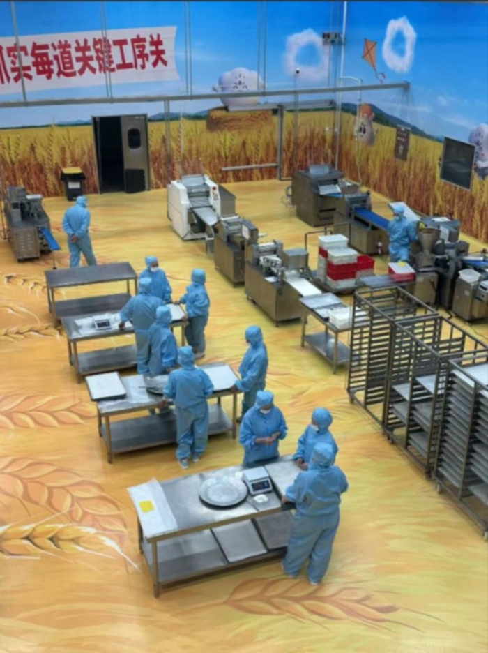 步入生產(chǎn)區(qū),場(chǎng)景悄然轉(zhuǎn)變。以“藍(lán)天白云、金色麥浪”為主題,車(chē)間一改常見(jiàn)面貌,還原為女工們熟悉的田間地頭、麥田場(chǎng)景。這既貼近員工的生命記憶、傳遞真切關(guān)懷,也讓每位工作者能以“為家人做早點(diǎn)”的心意,專(zhuān)注對(duì)待手中食材。