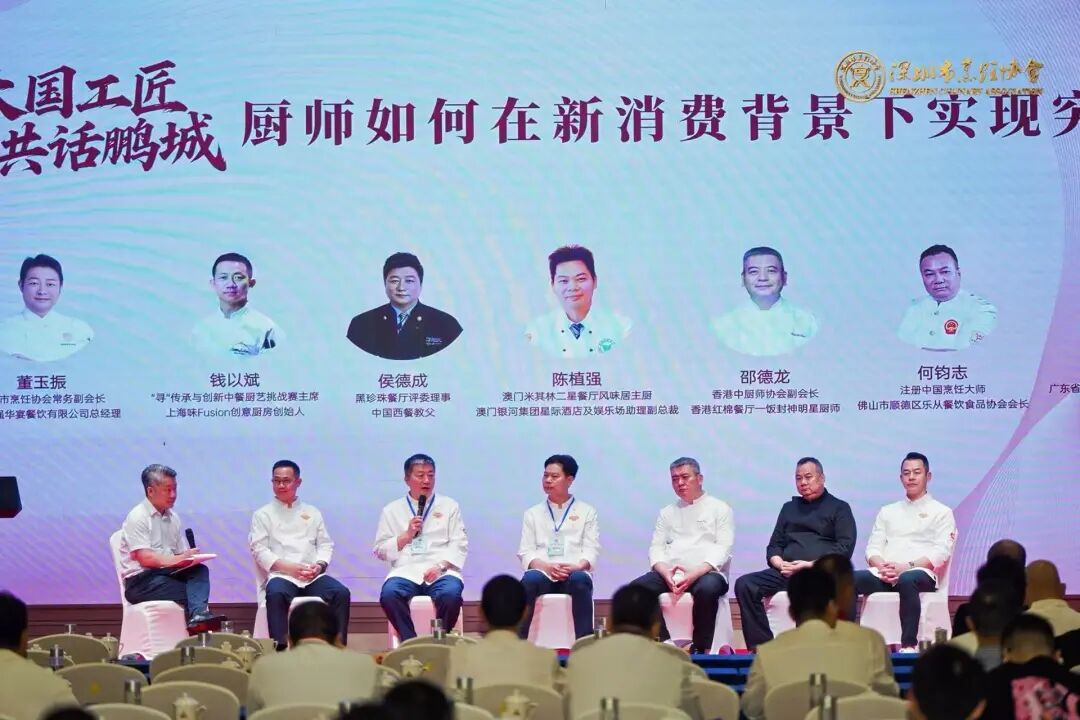 新時(shí)代,新消費(fèi);新機(jī)遇,新挑戰(zhàn)。APEC帶來(lái)國(guó)際視野,米其林樹(shù)立權(quán)威標(biāo)桿,消費(fèi)者對(duì)品質(zhì)、文化、體驗(yàn)的需求不斷升級(jí)。大會(huì)邀請(qǐng)了“尋”傳承與創(chuàng)新中餐廚藝挑戰(zhàn)賽主席錢(qián)以斌、黑珍珠餐廳評(píng)委理事、澳門(mén)米其林二星餐廳風(fēng)味居主廚、香港中廚師協(xié)會(huì)副會(huì)長(zhǎng)、注冊(cè)中國(guó)烹飪大師何鈞志、廣東省潮菜文化研究會(huì)常務(wù)副會(huì)長(zhǎng)葉飛擔(dān)任對(duì)話(huà)嘉賓,深圳市烹飪協(xié)會(huì)常務(wù)副會(huì)長(zhǎng)兼名廚委主席董玉振擔(dān)任主持人,共同以“廚師如何在新消費(fèi)背景下實(shí)現(xiàn)突圍”的主題進(jìn)行各自分享,聆聽(tīng)大國(guó)工匠們的真知灼見(jiàn)。