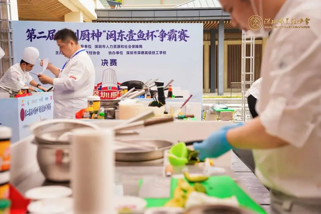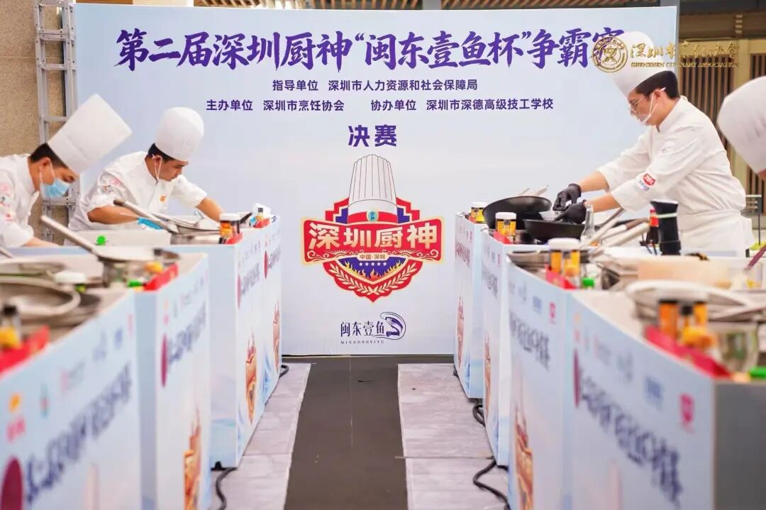 當(dāng)天大會(huì)現(xiàn)場(chǎng),第二屆深圳廚神“閩東壹魚(yú)杯”爭(zhēng)霸賽決賽八強(qiáng)選手角逐廚神寶座,難度系數(shù)、面向受眾更高更廣,旨在全市烹飪技能人才樹(shù)立起標(biāo)桿榜樣,發(fā)掘具備高超烹飪技藝水平且兼具創(chuàng)新創(chuàng)意表達(dá)能力的技能人才;賽事由來(lái)自深圳市深德高級(jí)技工學(xué)校袁志剛問(wèn)鼎深圳廚神桂冠,來(lái)自深圳星河麗思卡爾頓酒店吳海波、深圳深鐵鉑爾曼酒店關(guān)振強(qiáng)摘得深圳廚王稱(chēng)號(hào),來(lái)自深圳市崇城餐飲管理有限公司余嘉良、深圳泉悅餐飲投資管理有限公司廖家忠、深圳市泉悅飯聚管理有限公司梁耀陽(yáng)、深圳君悅酒店朱鑒榮、深航國(guó)際酒店彭建明奪得深圳名廚稱(chēng)號(hào)。