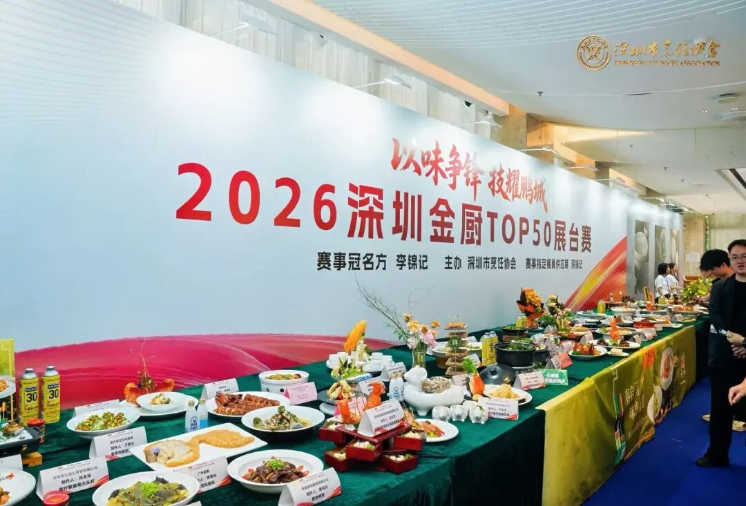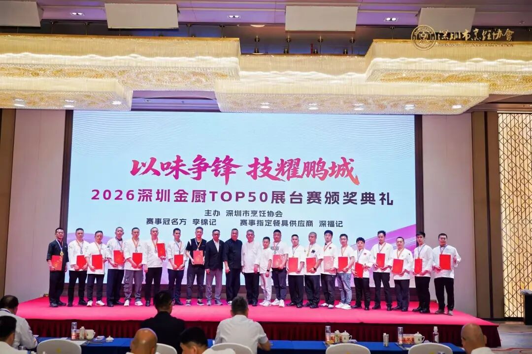 2026深圳金廚TOP50展臺(tái)賽是成品展示競(jìng)賽,以賽促技、以展促商,聚焦健康理念、商業(yè)創(chuàng)意、展臺(tái)設(shè)計(jì)、地域代表性等細(xì)則評(píng)判,64位來(lái)自全市餐飲單位的烹飪菁英參賽,共有10位選手榮獲深圳金廚·金鉆獎(jiǎng),分別是來(lái)自飯聚私廚的梁耀陽(yáng)、深圳君悅酒店的朱鑒榮、佳寧娜潮州菜江立源、深圳星河麗思卡爾頓酒店吳海波、深圳航空配餐部胡勁峰、南山中成美爵酒店林聰、深圳深鐵鉑爾曼酒店陳泳生、雪鄉(xiāng)情東北菜曲加意、醒圜公館杜光、大秦小宴鐘自培。