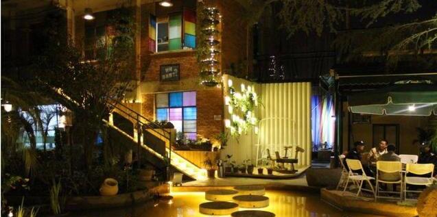 紅磚墻、舊式木框玻璃窗、涂鴉壁畫、破木吉他、大瓷缸、露天電影、紅色電話亭洗手池……這些只在70后、80后童年記憶中的玩意,如今出現(xiàn)在了圍爐煮酒餐廳中。