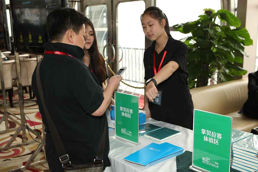 在掌貝“拉客手環(huán)”的互動(dòng)環(huán)節(jié),行業(yè)大咖分別掃描現(xiàn)場工作人員各自的掌貝手環(huán),并掃碼領(lǐng)取電子券,隨即可以在后臺(tái)實(shí)時(shí)“監(jiān)控”卡券派發(fā)數(shù)量的更新,并了解到卡券的來源路徑。這讓現(xiàn)場的商戶很興奮,有商戶表示:有了這個(gè)拉客營銷的功能,今后店里可以更清晰地對(duì)每一個(gè)工作人員進(jìn)行量化考核,更好的進(jìn)行人力資源配置。