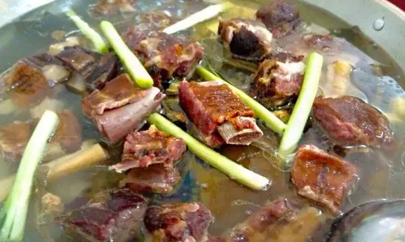 據(jù)老板介紹,臘排骨選用土豬排骨,加入適當(dāng)?shù)氖雏}腌制,有的會(huì)加些輔助的酒、白糖、香料等,腌制半個(gè)月左右,鹽味已經(jīng)深入骨髓,骨頭與肉的味道融在了一起,水分被大量腌出來(lái),再拿出來(lái)放在背陰通風(fēng)處晾干,一到三個(gè)月晾曬后排骨就變得“臘味十足”了。而且臘排骨中磷、鉀、鈉的含量豐富,還含有脂肪、蛋白質(zhì)、碳水化合物等元素,吃起來(lái)味道醇香,肥不膩口,瘦不塞牙,不僅風(fēng)味獨(dú)特,而且具有開(kāi)胃、去寒、消食等功能。