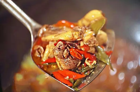 柴火雞主要食材為原生態(tài)的跑山雞,相比于城市里的飼養(yǎng)雞,口感鮮味遙遙領(lǐng)先。師傅先將新鮮的雞肉在鍋中翻炒,嘩啦啦的聲音伴隨著陣陣香味,看生肉都有一種想吃的感覺(jué)。七八分熟之后轉(zhuǎn)到各個(gè)桌上的大油鍋中,這個(gè)時(shí)候大家可以按照自己的口味放入辣椒和醬料,蓋上鍋蓋燜5分鐘,再打開(kāi)鍋,濃香四溢!雞肉細(xì)嫩一點(diǎn)不渣,燜后的醬汁變得濃稠,包裹著雞肉,一口咬下去整個(gè)人都暖了。