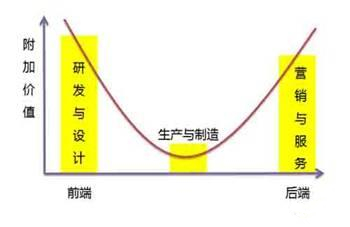 明白了嗎,微笑曲線從來(lái)都是個(gè)偽命題,代工貼牌并不是天然就比品牌科技低級(jí),真正低級(jí)的是你因?yàn)樽约菏谴ぞ蛷膩?lái)不動(dòng)腦子。在價(jià)值鏈條上,“設(shè)計(jì)”、“品牌”和“科技”可以稱王,“制造”、“集成”甚至“物流”未必就不能稱霸。