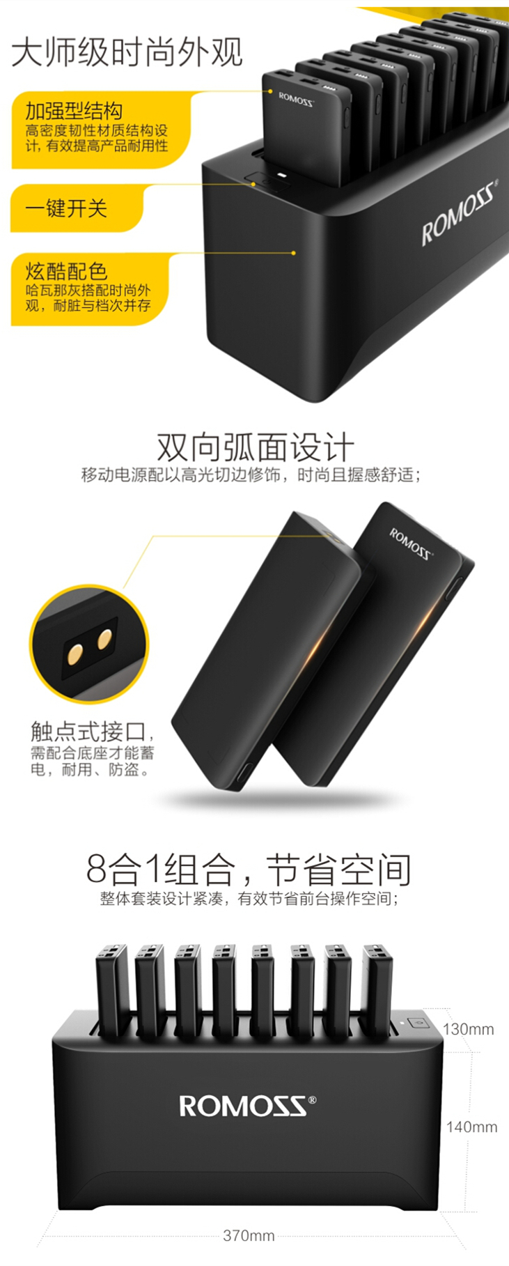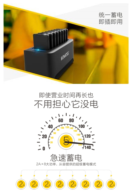 用電需求難滿足:餐廳消費(fèi)者對手機(jī)充電的需求較高,專用移動電源很好地解決了這一難題。不僅擁有8個(gè)獨(dú)立的移動電源,能同時(shí)滿足多位客人的需求,而且大功率底座能時(shí)時(shí)提供強(qiáng)大的蓄電功能,相互之間輪換充電,充分保證餐廳時(shí)刻“電力十足”。