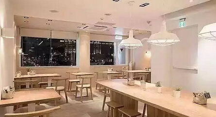 整個店采用了木色+白色的清新LOOK: 純白的工業(yè)礦燈略顯簡約,木質的器具古拙卻貼近自然本色,鐫刻在墻上的文字體現(xiàn)了吉野家新生活概念店的理念,不同區(qū)域的燈具都各不相同……