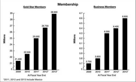 目前更以全球 41 國的 629 家賣場和 6,700 萬名會(huì)員成為全球最大的連鎖會(huì)員制倉儲(chǔ)量販集團(tuán),數(shù)以千萬計(jì)的會(huì)員每年所繳的會(huì)費(fèi)約占 Costco 總銷售額的 2%,但是在整體利潤中卻有高達(dá)54% 的比例。2014 年給 Costco 帶來商品銷售賺入10 億美元、會(huì)員費(fèi)收入賺進(jìn) 24 億美元的獨(dú)特且穩(wěn)定的利潤結(jié)構(gòu)。