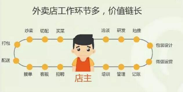 3、餐飲人普遍缺少高效、穩(wěn)定的供應(yīng)鏈——需要管理的流程過多過雜,包含切配、買菜、洽談、研發(fā)、地推、記賬、管理、培訓(xùn)、招聘、客服、接單、配送等十幾個環(huán)節(jié)。