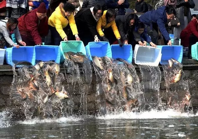 2月22日,山東省濟南市,眾多市民來到大明湖南岸,集體將低價購買的魚放生到大明湖,千余尾魚同時傾倒在湖中,場面頗為壯觀。購買活魚的市民以中老年婦女居多,每次花費少則兩三百元,多則上千元。據(jù)悉,每逢正月初一和十五,都有數(shù)百市民來大明湖放生,超過萬斤的魚在大明湖放生,但每次放生后都會有游客帶著長竿漁網(wǎng),捕撈剛剛放生的魚。小編感嘆,大媽們放出的大招真是一招勝一招啊,估計那些跟在后頭的捕魚游客以后碰面都會寒暄一句,“你還記得大明湖畔的大媽嗎?”