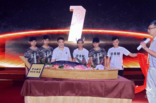 在派對一開始,就看到工作人員推著大目金槍魚進(jìn)入主場進(jìn)行亮相,隨后舉行了金槍鮮生百日宴倒計(jì)時,現(xiàn)場氣氛十分濃重!當(dāng)派對進(jìn)行到三分之一時,金槍鮮生展現(xiàn)本次派對的首秀—開魚秀。