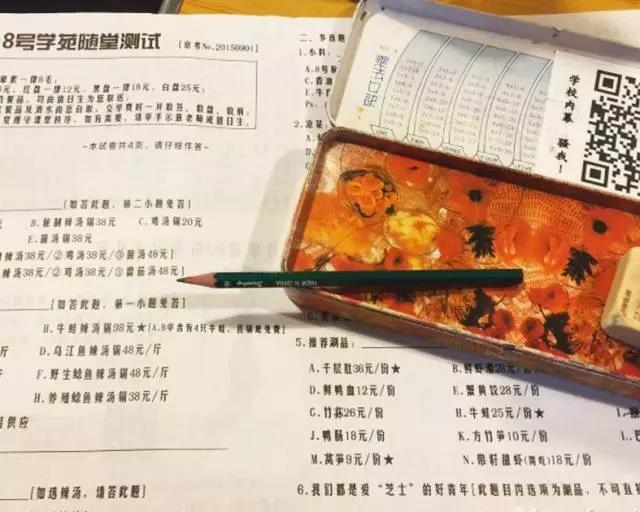 北京的一家80后懷舊主題餐廳“8號苑”,整個餐廳不僅還原了教室的情景,連菜單都設計成了試卷的形式,點菜變成了做選擇題,非常有代入感。從大眾點評上的反饋來看,消費者對這樣的設計非常有好感。