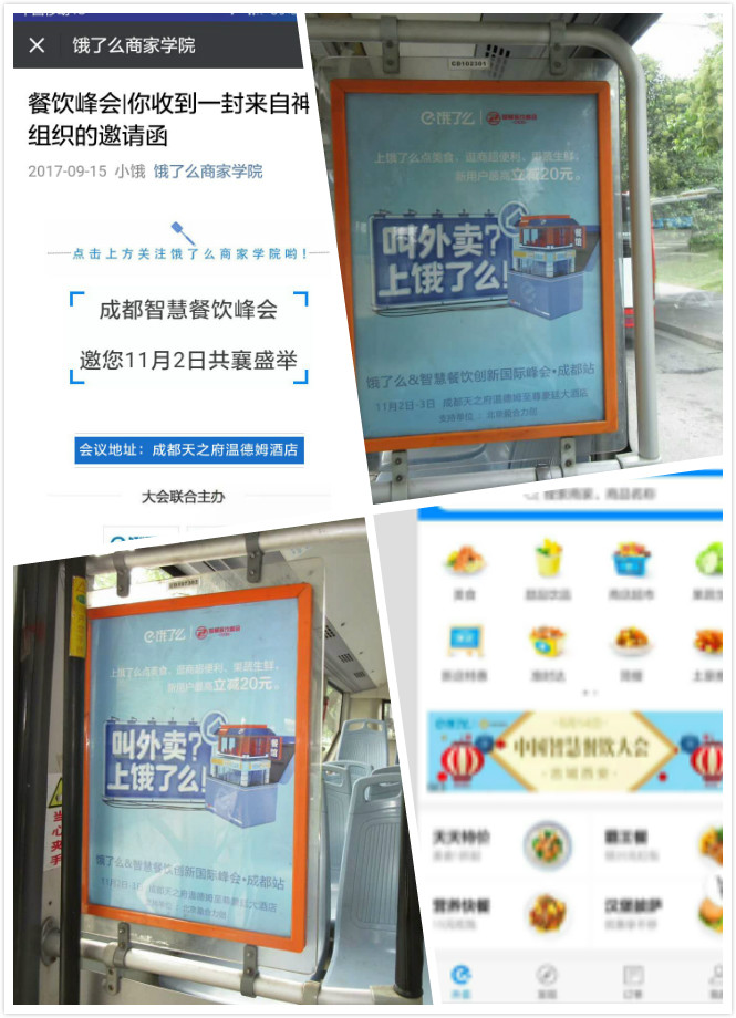 9月21日成都300余量公交車廣告上線;10月1日餓了么app端部分主要城市banner上線推廣;每月2次百余家合作媒體的峰會報道發(fā)布;餓了么商學(xué)院+微吼,雙平臺線上萬人直播;本次大會吸引了來自全國300多家品牌餐企,以及行業(yè)內(nèi)領(lǐng)軍的餐飲服務(wù)商。