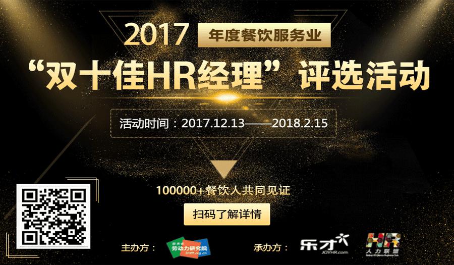 由服務(wù)業(yè)勞動(dòng)力研究院發(fā)起,樂才JoyHR、餐飲人力聯(lián)盟俱樂部承辦的“2017年度餐飲業(yè)雙十佳HR經(jīng)理評選”將于2017年12月13日正式啟幕