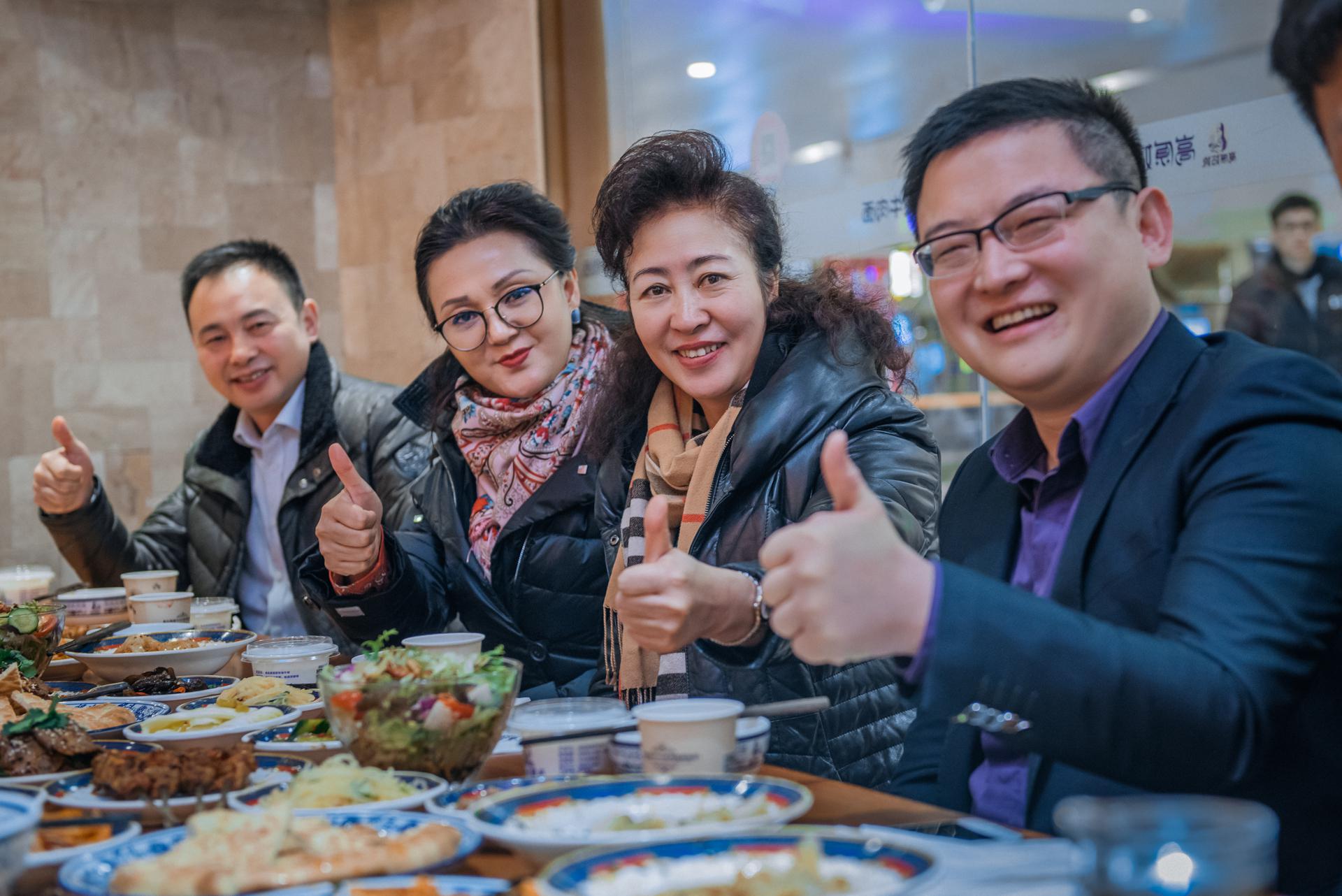 (馬芳與青海省委統(tǒng)戰(zhàn)部副部長、省工商聯(lián)黨組書記吳捷一行在高原姑娘吃面)