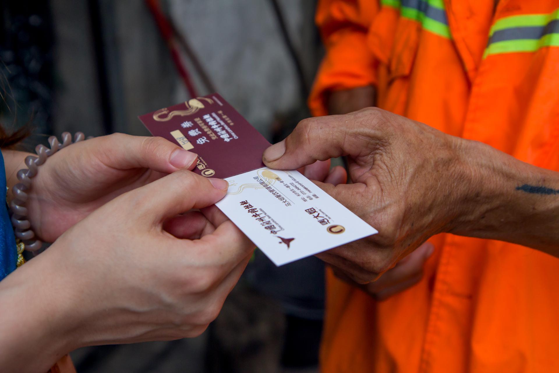 (高原姑娘將免費的牛肉面券送到長沙環(huán)衛(wèi)工人手中)