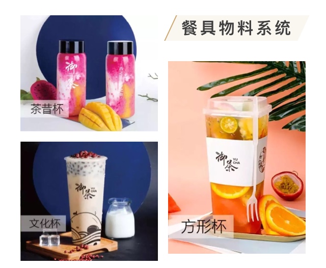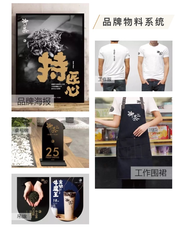 御茶的視覺形象系統(tǒng)非常齊全且實(shí)用,從產(chǎn)品的餐具到裝飾門店的海報(bào)物料,再到營銷用的運(yùn)營海報(bào)物料等等一應(yīng)俱全,方便快速立店,也能滿足品牌長期盈利的需求。
