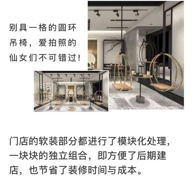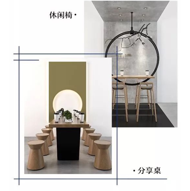 店內(nèi)以『方、圓』為設(shè)計(jì)主體元素,將古典的中式對稱美運(yùn)用其中,假山、枯枝恰到好處的穿插其間,使整個空間既有復(fù)古的雅韻也有現(xiàn)代的潮流感。