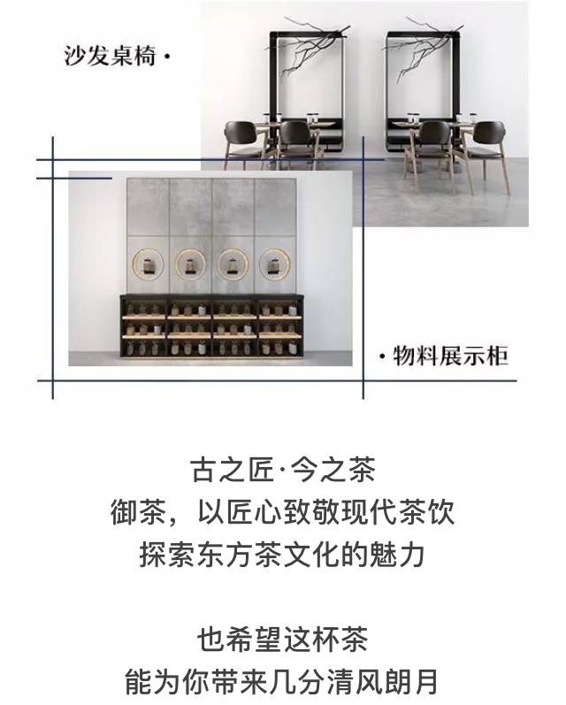 懷著對東方文化的崇敬與熱愛,創(chuàng)始人將『天圓地方、天人合一』融入御茶的門店設(shè)計(jì)理念中,中國幾千年的文化古韻以嶄新的姿態(tài)融入設(shè)計(jì)里,盡顯端莊、素雅、歸真之氣。