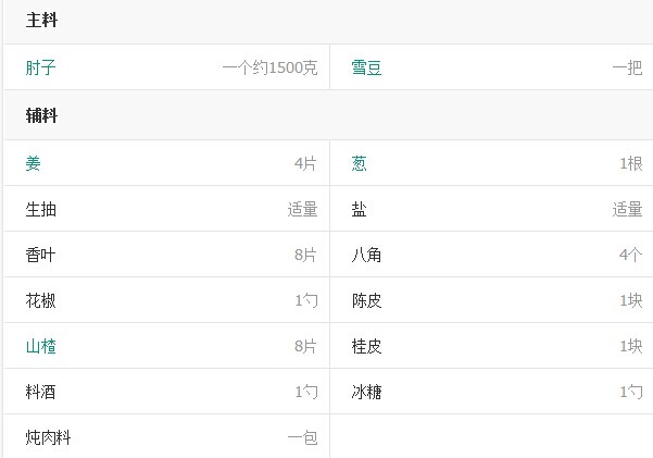 5. 鍋中放入肘子,放入各種調(diào)味料,放入雪豆。加開水至湯汁基本能浸沒肘子。