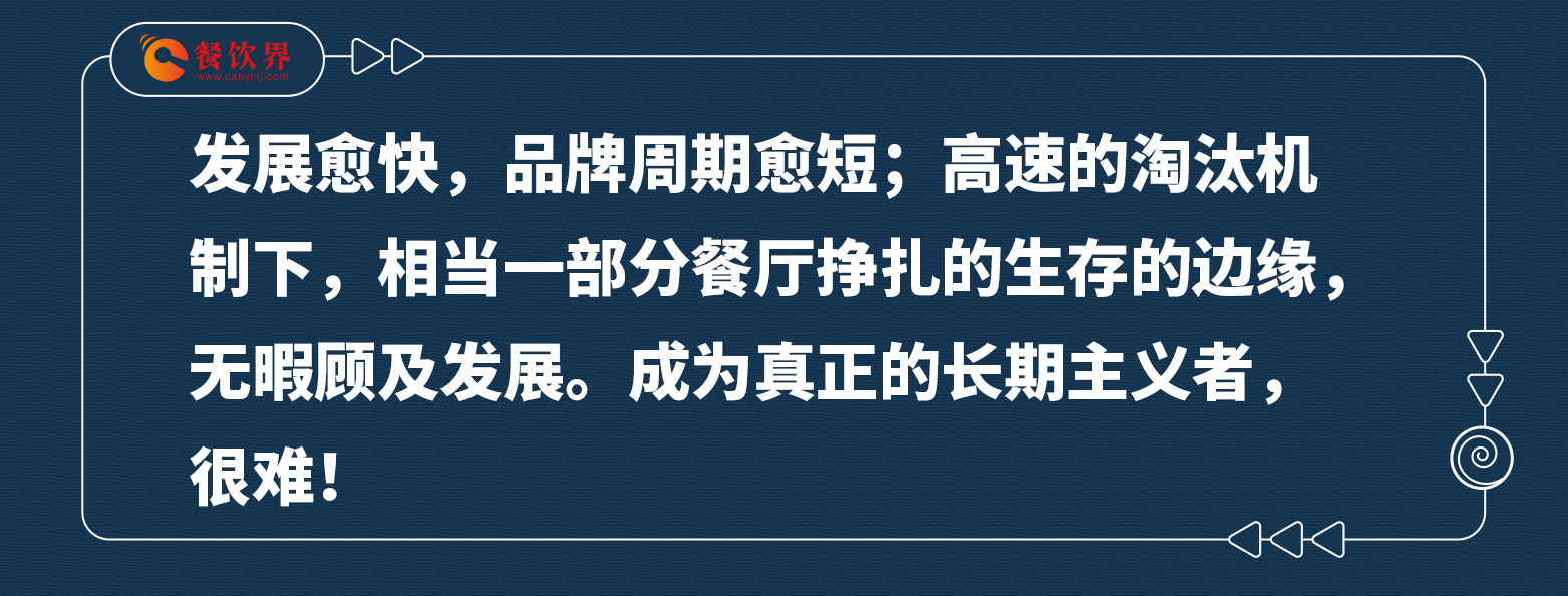發(fā)展愈快,品牌周期愈短;高速的淘汰機(jī)制下,相當(dāng)一部分餐廳掙扎的生存的邊緣,無暇顧及發(fā)展。成為真正的長期主義者,很難!
