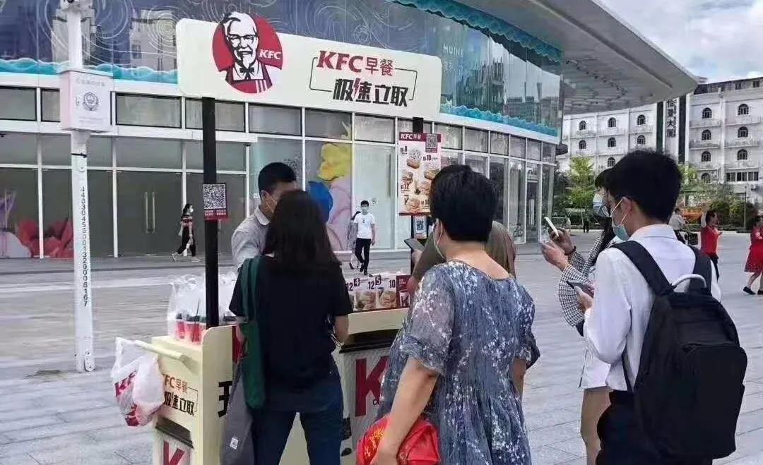 深圳卓悅匯購(gòu)物中心門口,肯德基設(shè)置了一輛小推車,主要供應(yīng)早餐產(chǎn)品,粥+油條、咖啡+漢堡等5款套餐供選擇,8—12元不等,產(chǎn)品提前打包好,顧客選好后掃二維付款,馬上就能取走,2名服務(wù)員一位負(fù)責(zé)攬客一位負(fù)責(zé)取餐銷售……