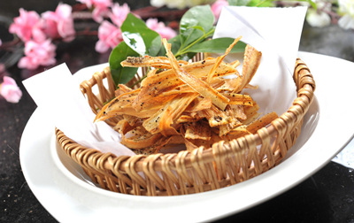 1.牛蒡含有大量的鐵質(zhì),只要曝露在空氣中就會氧化成黑褐色,為了避免變色,切好的牛蒡要立刻放入清水中浸泡才不會氧化(將牛蒡絲刨在水里當(dāng)水變成鐵銹色時,必須再換清水,否則不能保持牛蒡的原色),也可將處理好的牛蒡泡入濃度3%的醋水中15分鐘,一來可使牛蒡的色澤更加潔白,二來也可保有牛蒡本身的特殊香氣。