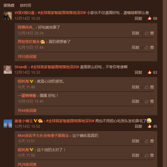現(xiàn)場(chǎng)嘉賓與顧客均對(duì)造面怪獸智能面館給予了高度肯定,擁有高度標(biāo)準(zhǔn)化、數(shù)字智能化以及極致效率的造面怪獸,已經(jīng)走出過(guò)往機(jī)器人餐廳的“純概念”模式,具有極大的市場(chǎng)商業(yè)價(jià)值,一位同行媒體怒贊:這樣智能的面館,不火都沒(méi)理由!