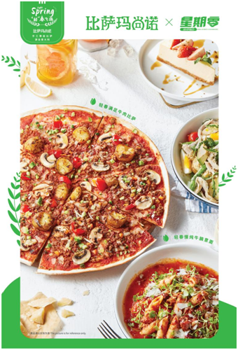 3 月 ,意式高端連鎖餐飲品牌比薩瑪尚諾,攜手中國植物肉頭部品牌星期零,在春天來臨之際推出了主打健康輕熱量的“輕春飛揚(yáng)”系列。