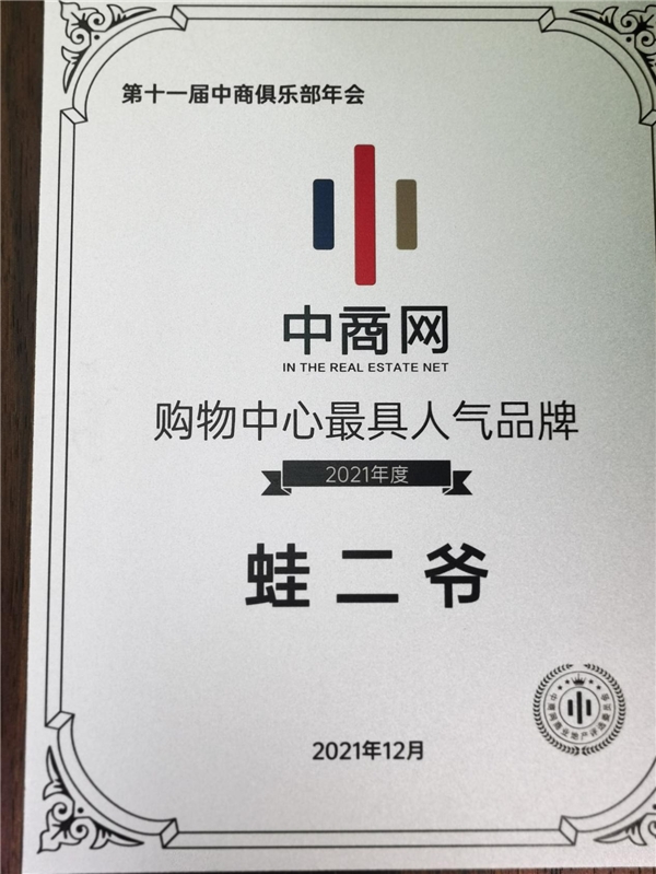 蛙二爺硬核斬獲2021年度購(gòu)物中心最具人氣品牌獎(jiǎng)專欄