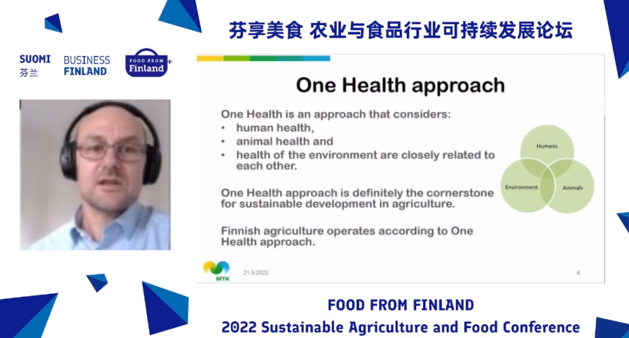 芬蘭中央農(nóng)林主聯(lián)合會(huì)國際貿(mào)易總監(jiān)Thimjos Ninios先生聚焦于上游生態(tài)介紹:“減少碳排放、增加碳固定、增加可再生能源的使用以及適應(yīng)氣候變化。為此,芬蘭農(nóng)業(yè)按照‘同一個(gè)健康’方法運(yùn)作。此方法考慮到了人類健康、動(dòng)物健康和環(huán)境健康。毫無疑問,‘同一個(gè)健康’方法是農(nóng)業(yè)可持續(xù)發(fā)展的基石?!?/span>
