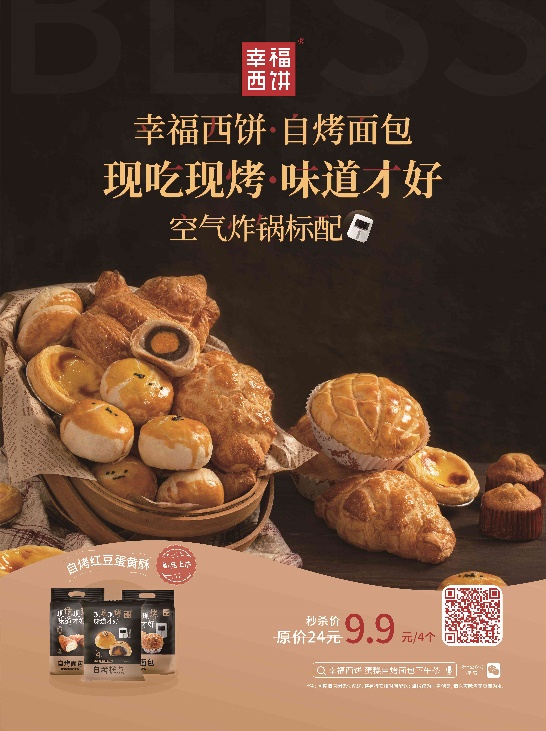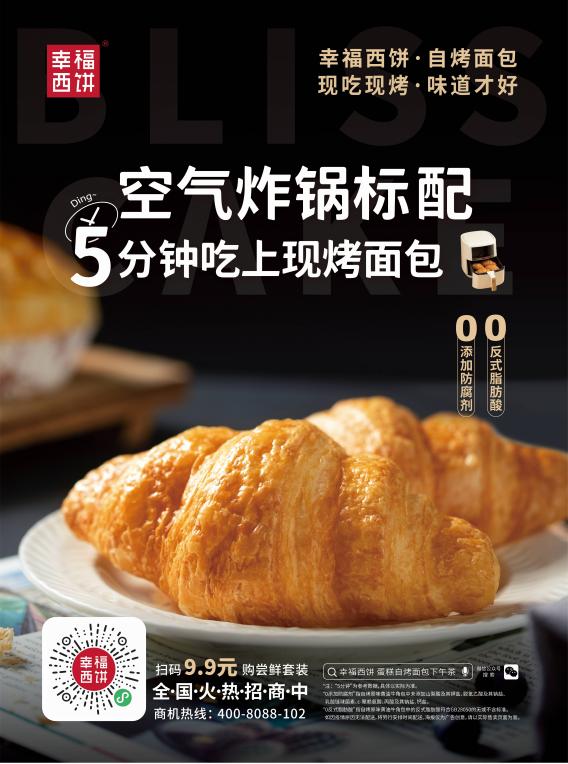 幸福西餅自烤面包致力于打造“家里的面包房”,只要有空氣炸鍋,“一開一放一關(guān)”160℃烤5分鐘即可吃上熱騰騰剛出爐的面包,是家庭用戶早餐、白領(lǐng)辦公室下午茶、宵夜解饞快捷方便的新選擇。