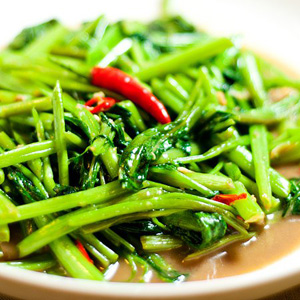 2.空心菜以嫩莖、嫩葉供食用,適用于炒、拌等方法;空心菜遇熱容易變黃,烹調(diào)時(shí)要充分熱鍋,大火快抄,不等葉片變軟即可熄火盛出;